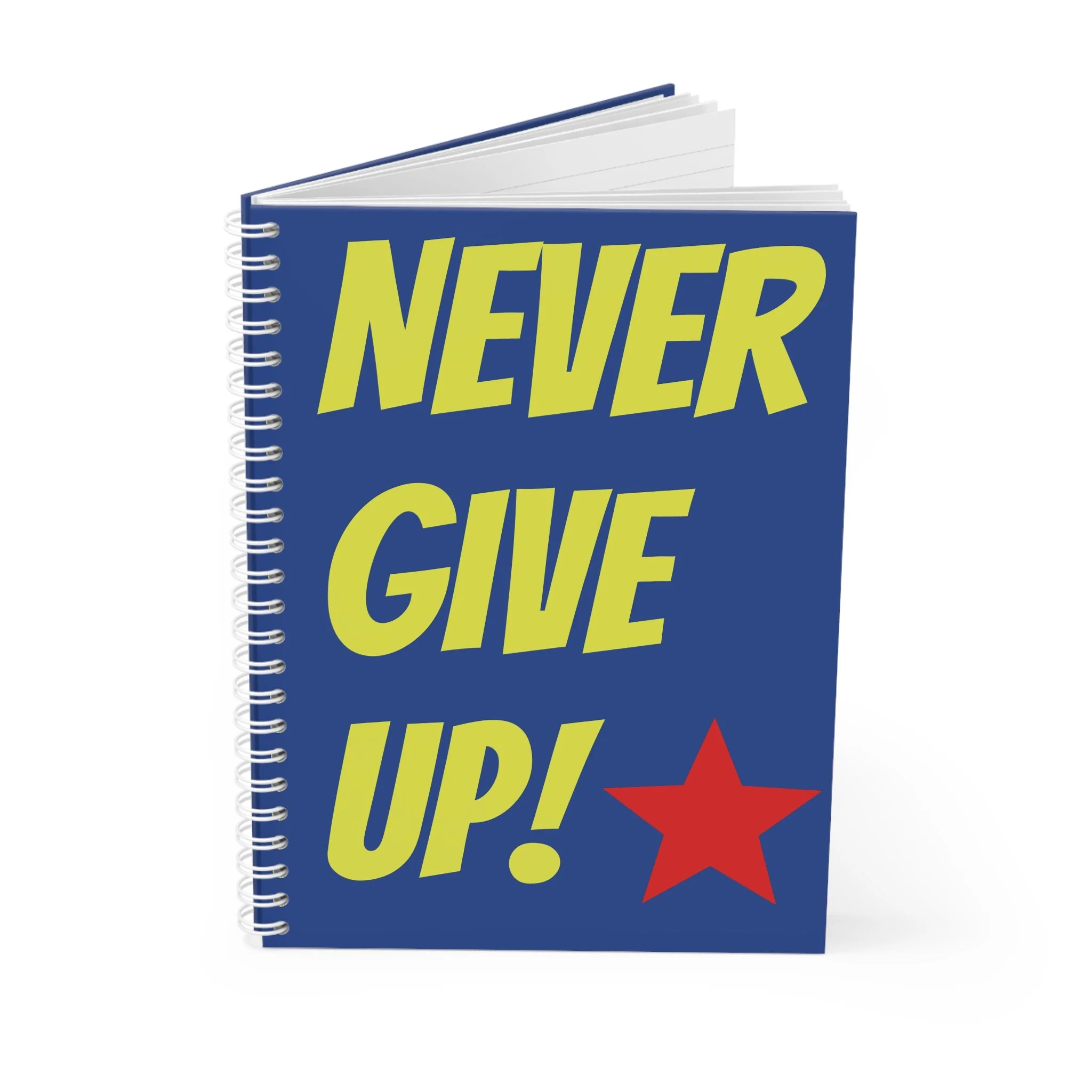 Never Give Up! Spiral Notebook — Motivational Journal with Bold Typography & Red Star